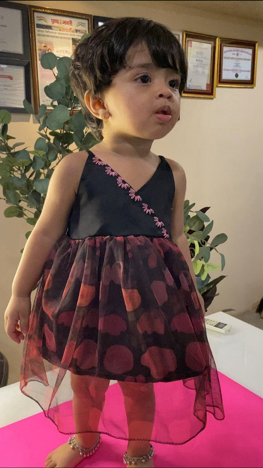 Black Satin Net Party Wear Dress – Trending Kidswear Fashion